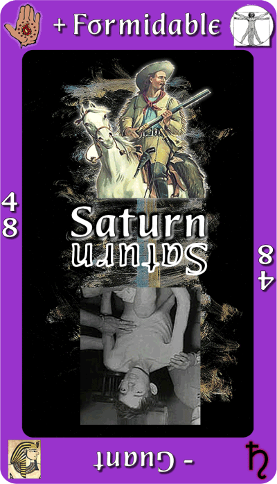 Contrast this to the Jovial (the Emperor) whose sense of grandeur is more about style and largesse. The Saturnian relies for more on substantive qualities than making a show of themselves. When Saturn plays its role, know that an internal see-saw battle between showing oneself with strength and determination conflicts with the tendency to act in ways that are callous, rigid, or failing any self control, even uncouth. The message always is: stand tall, hold your pose, and step out and lead with your own character.